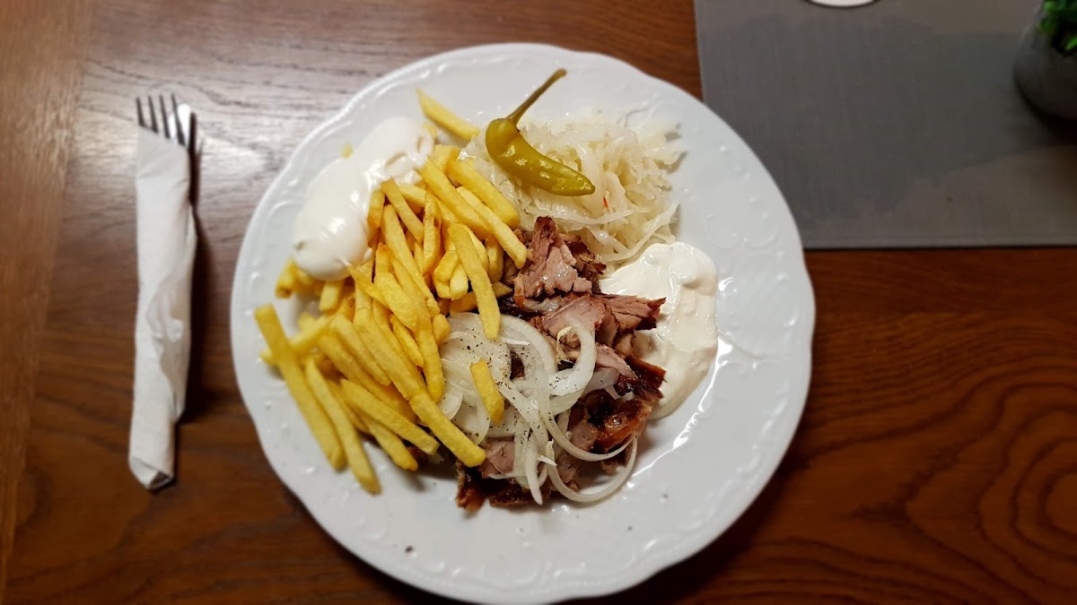 I had the Gyros Pita. It was a huge portion, hot and fresh. The meat was cooked to perfection too. And the price was very reasonable. My wife had the Gyros Teller, which was also excellent. It was a nice way to finish our walk down the Rhein River.